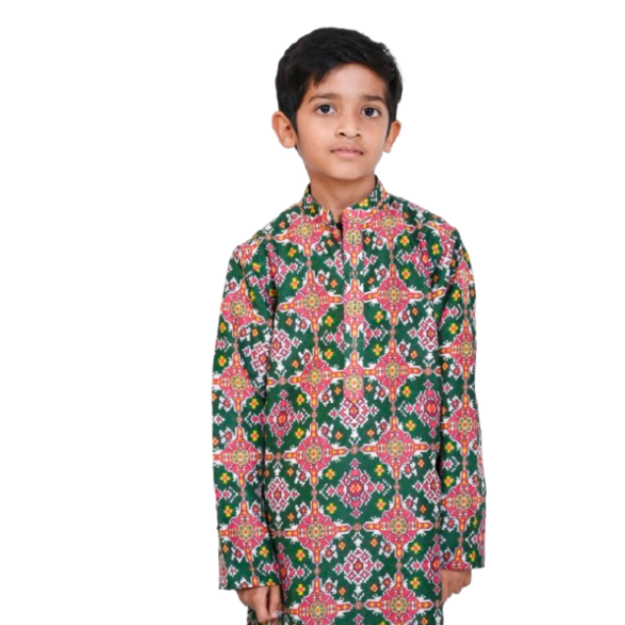 Paired with bright red pajamas, this outfit delivers a classic yet modern festive look. Crafted from breathable fabric, it ensures comfort while keeping your little one stylish for weddings, festivals, and special celebrations